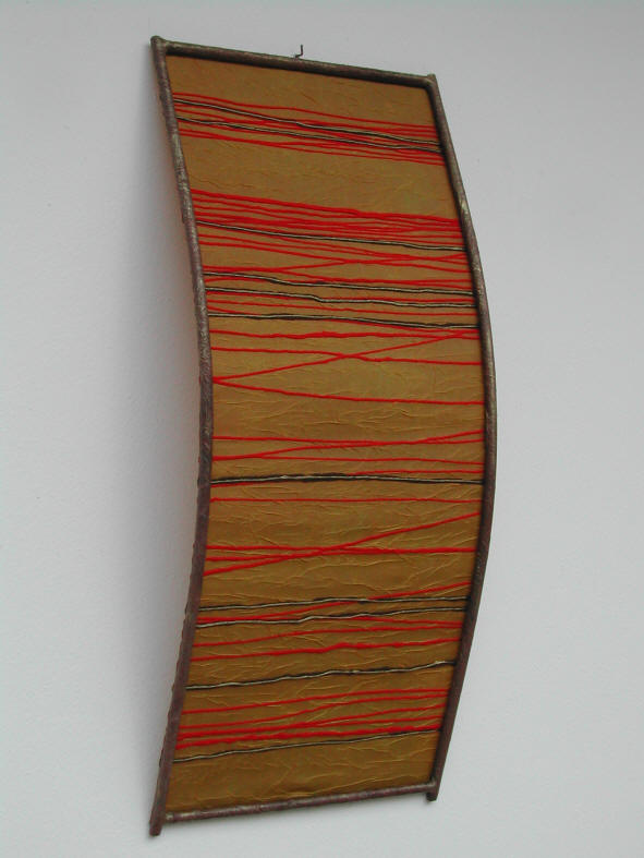 CONVESSITelaio in ferro battuto rivestimento in "Carta Canapart" decorata. Dimensioni cm 88 * 38 Una lampada 15 W